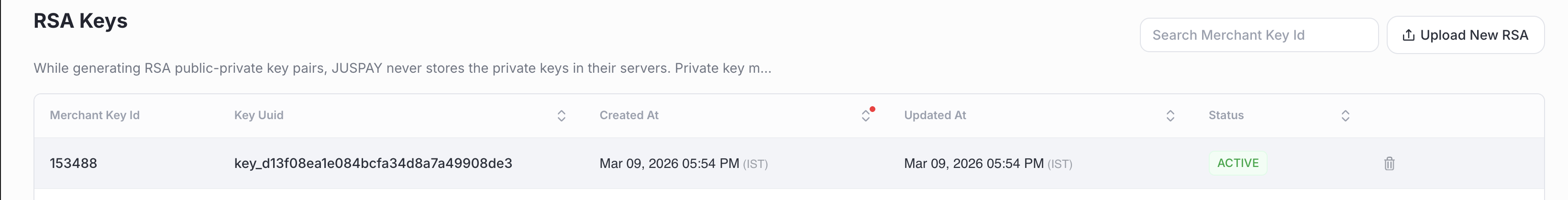 Use the following public keys to encrypt card details before sending requests to Juspay APIs.