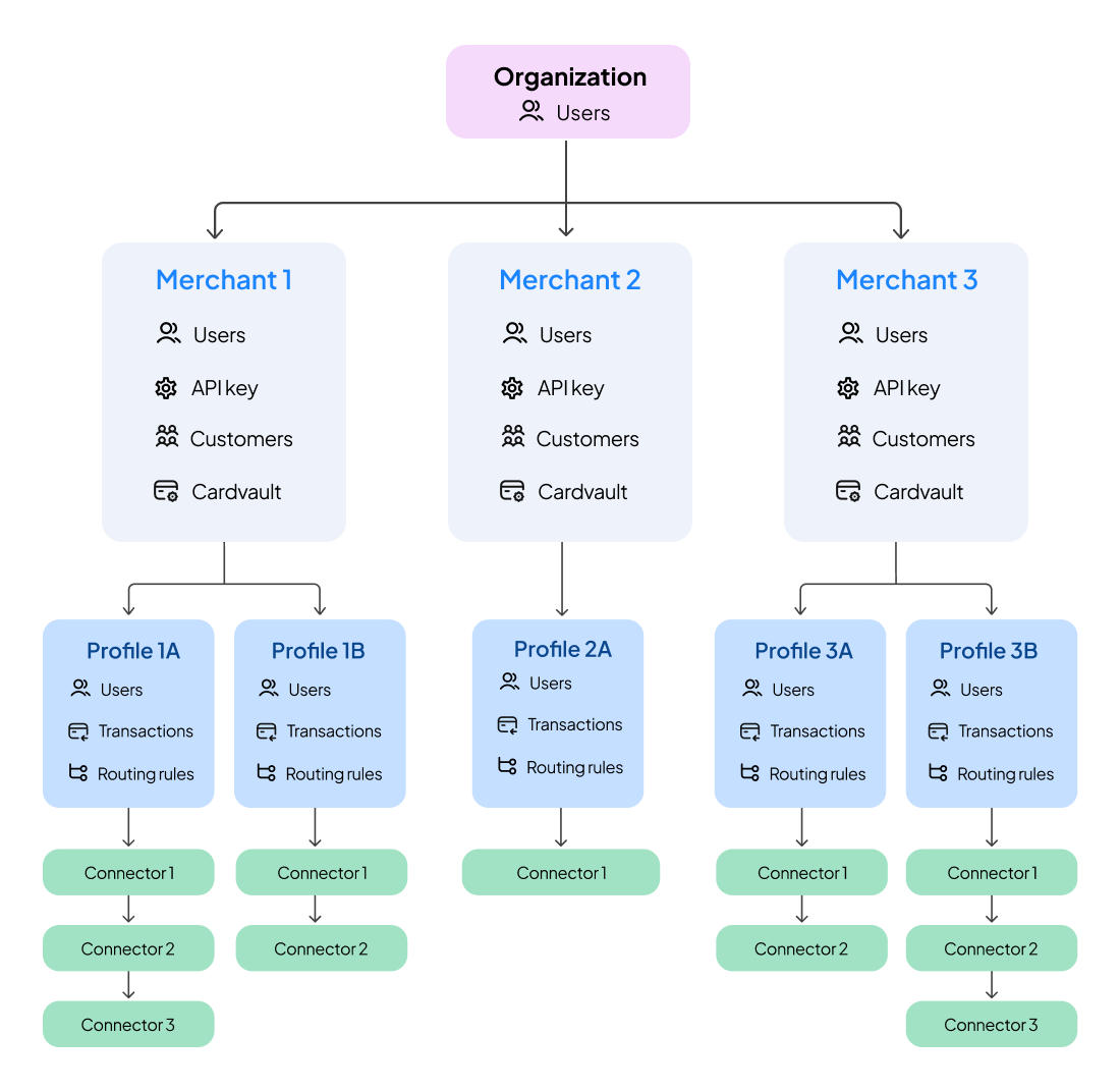 Hyperswitch lets businesses mirror their real‑world structure using organizations, merchant accounts, and profiles, so they can decide exactly where payments should be accepted and how much control sub‑merchants get.