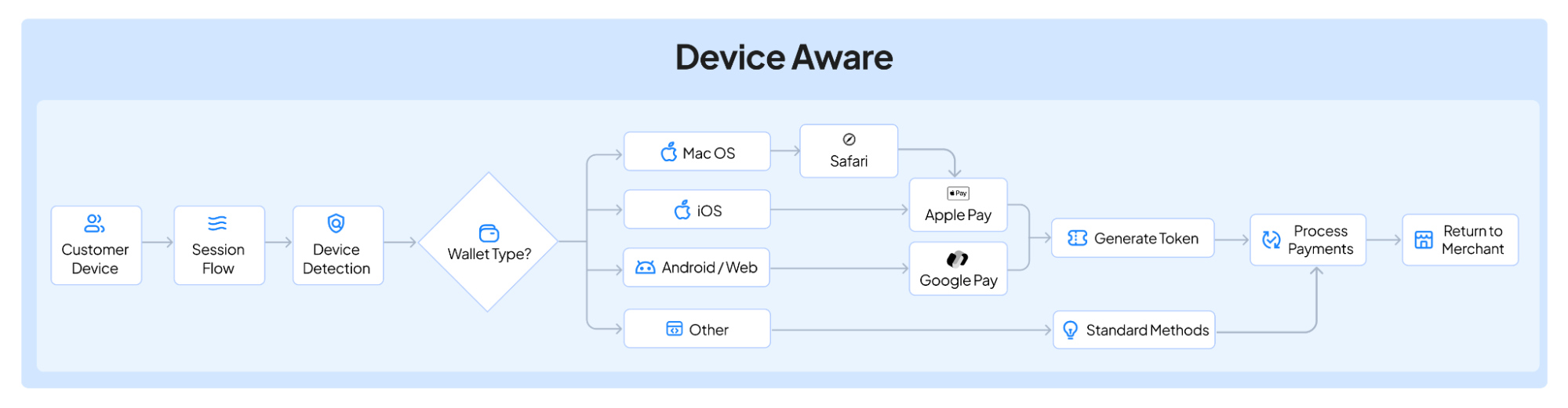 Hyperswitch checks the device in the session flow to decide when to surface wallets like Apple Pay and Google Pay, so these options only appear on devices that can actually use them.