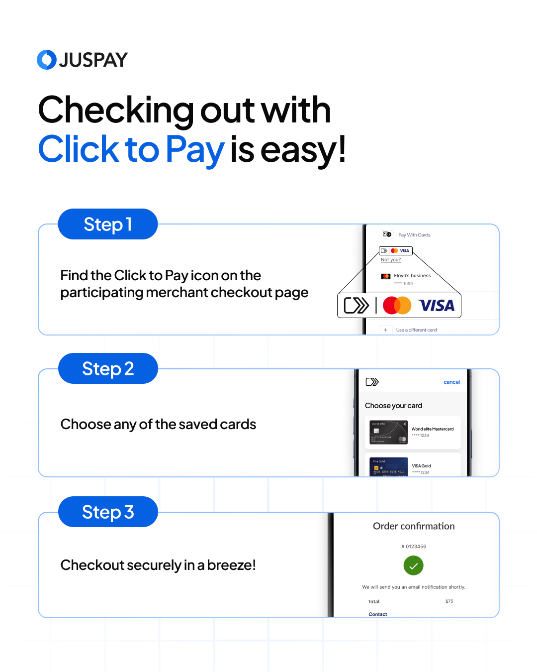 How does click to pay work: Click to pay mechanism can be divided into three key steps