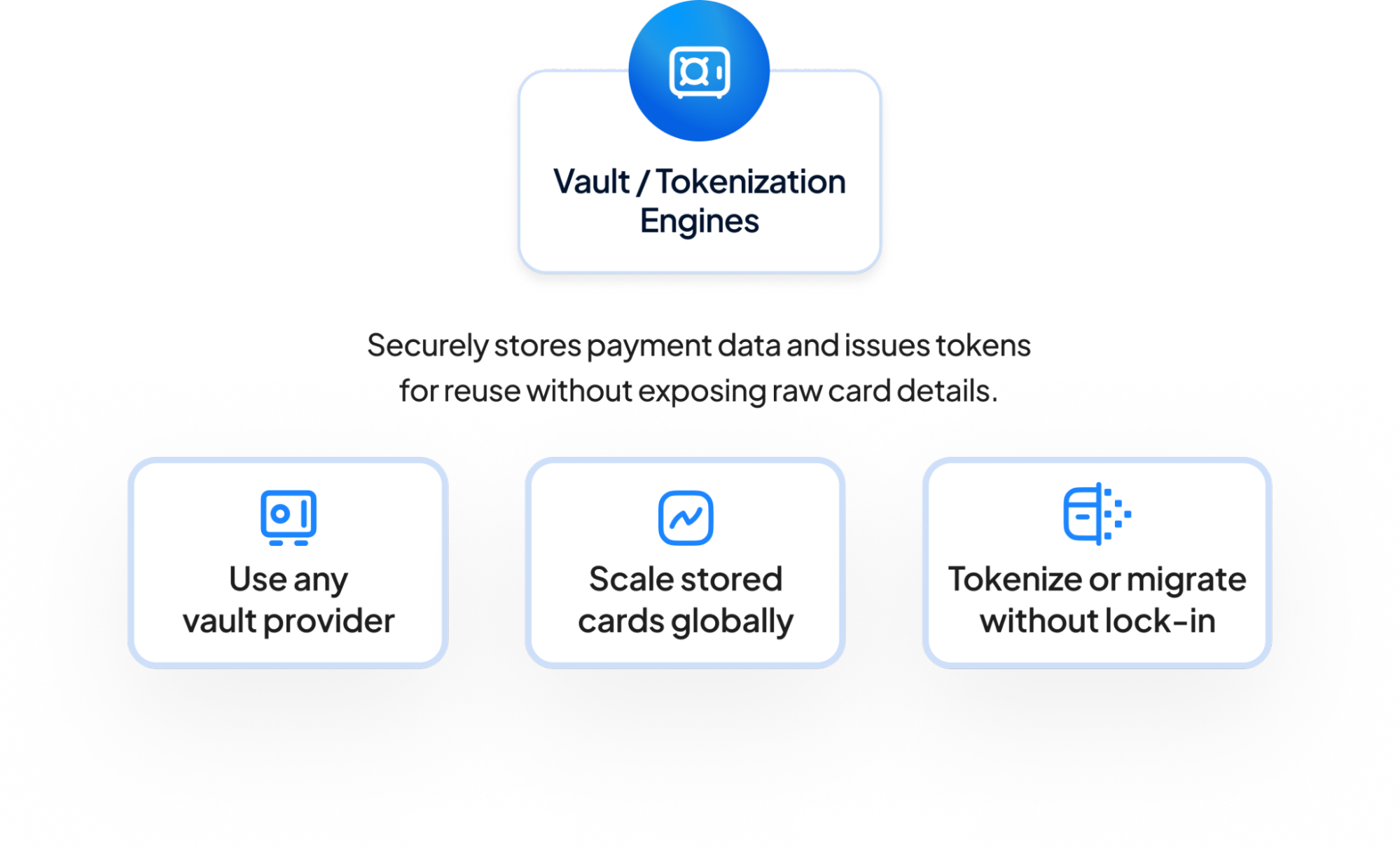 Vault SDK with Tokenize / Detokenize flow: Merchants can collect and tokenize card data using an external vault and SDK. Once the card is tokenized, the merchant can make a S2S call to Hyperswitch with that token. Hyperswitch will further connect with the vault to detokenize the token and obtain raw PAN which will then be used for transactions. This option allows the merchant to continue with their current vault provider while taking advantage of the unified API and related capabilities offered by Hyperswitch without the need to maintain PSP specific pay loads.
