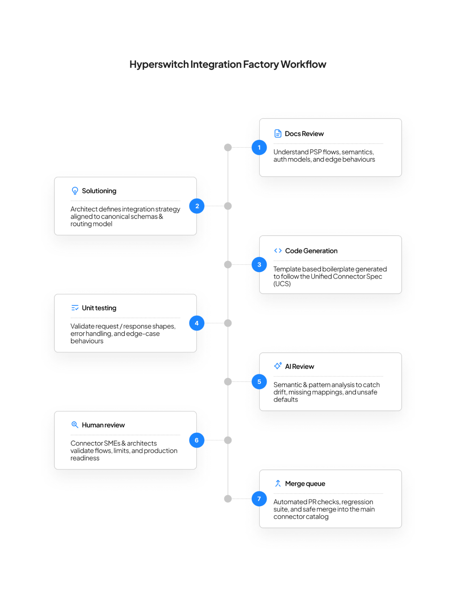The combination of Hyperswitch’s underlying architecture and these four pillars fundamentally changes what “integration effort” means. What once required months of custom engineering becomes a repeatable, reliable process that delivers production-ready connectors in days.