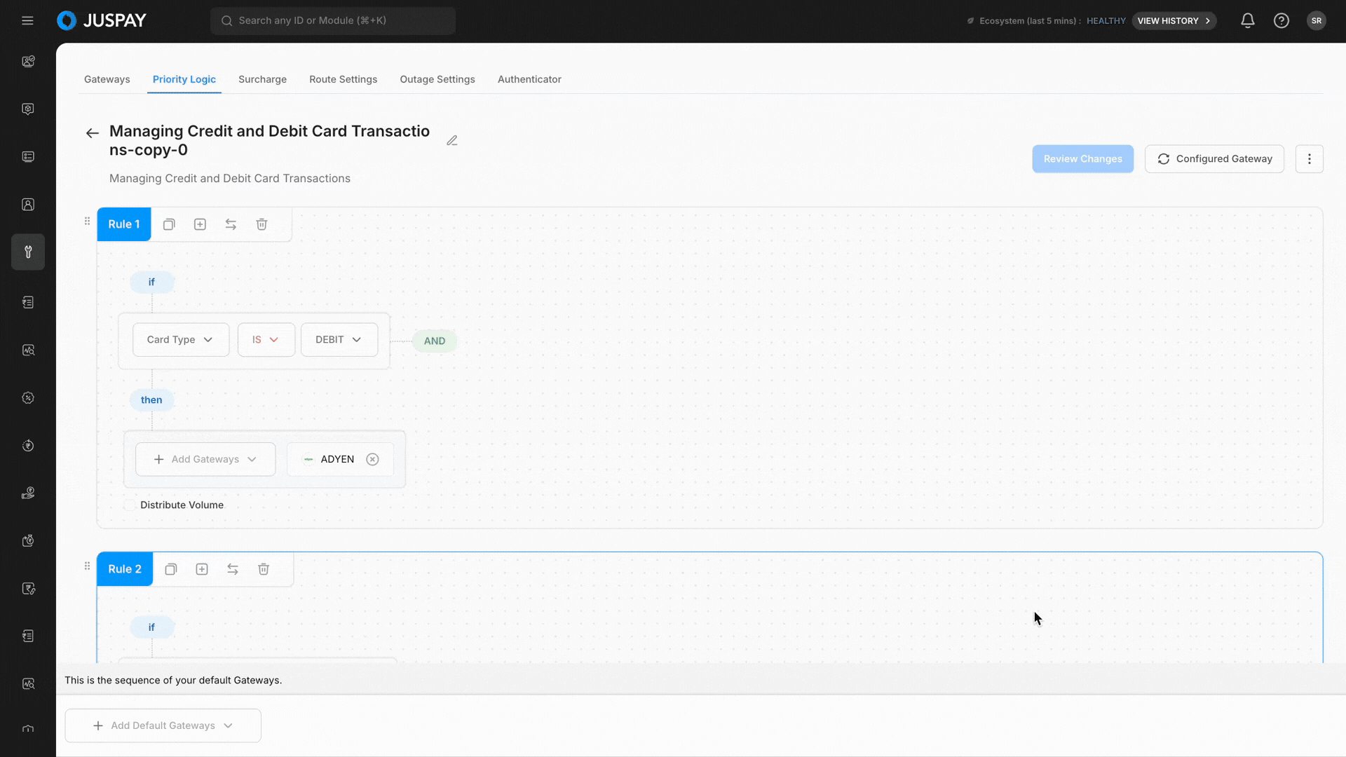 • When enabled, transactions are forced to route only through the gateways or configurations defined in that rule.