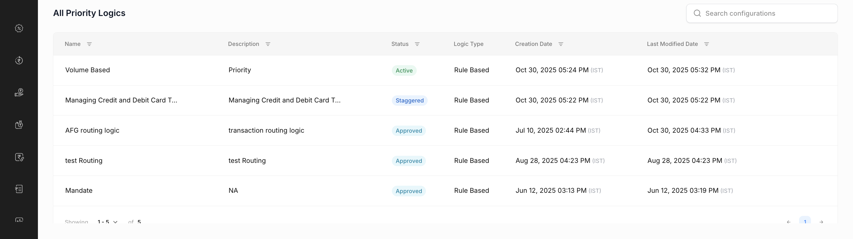 The All Priority Logics table lists every routing configuration created. This includes both active and inactive configurations, helping you view, manage, and track the full history of your routing logic setups.