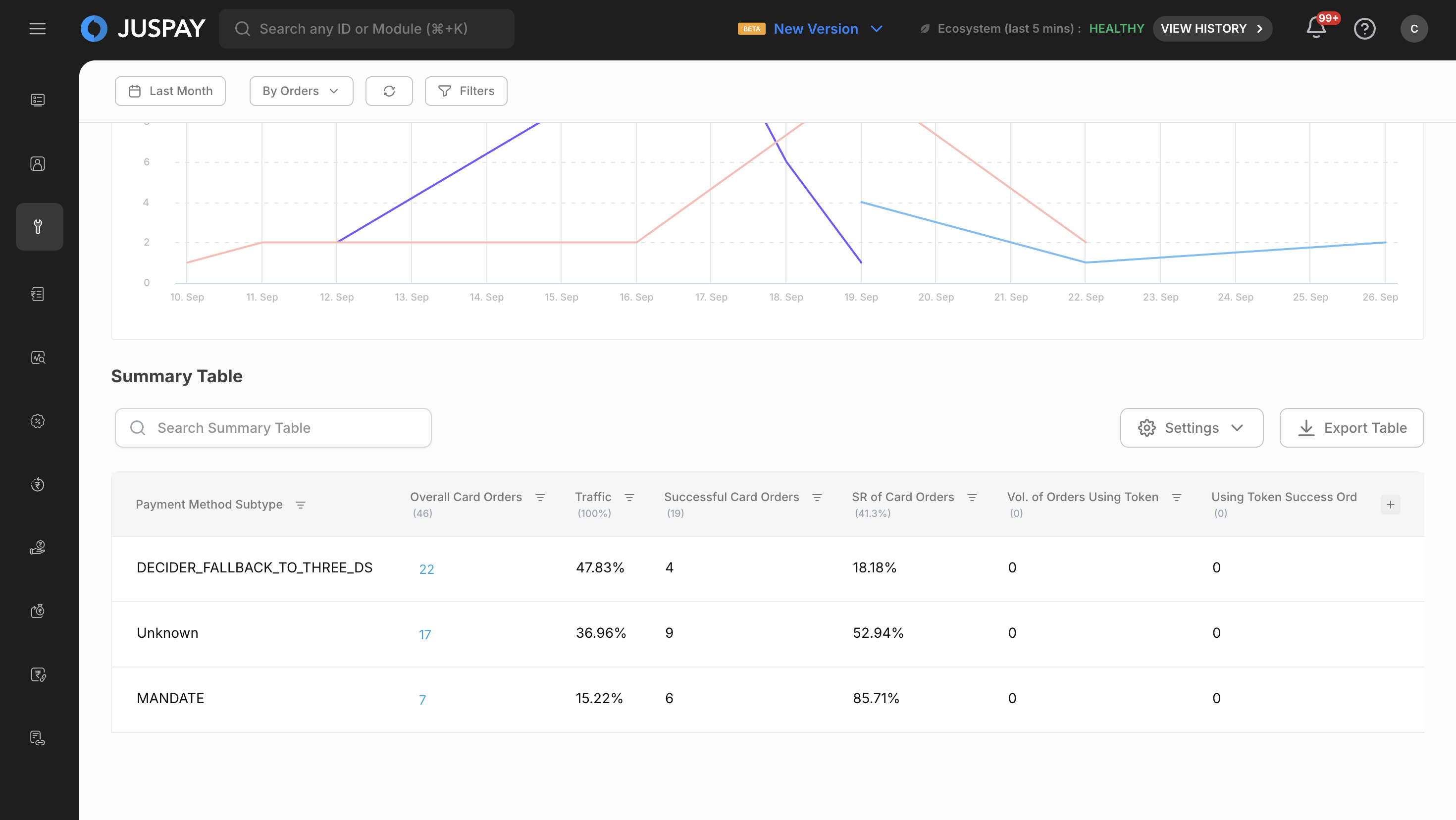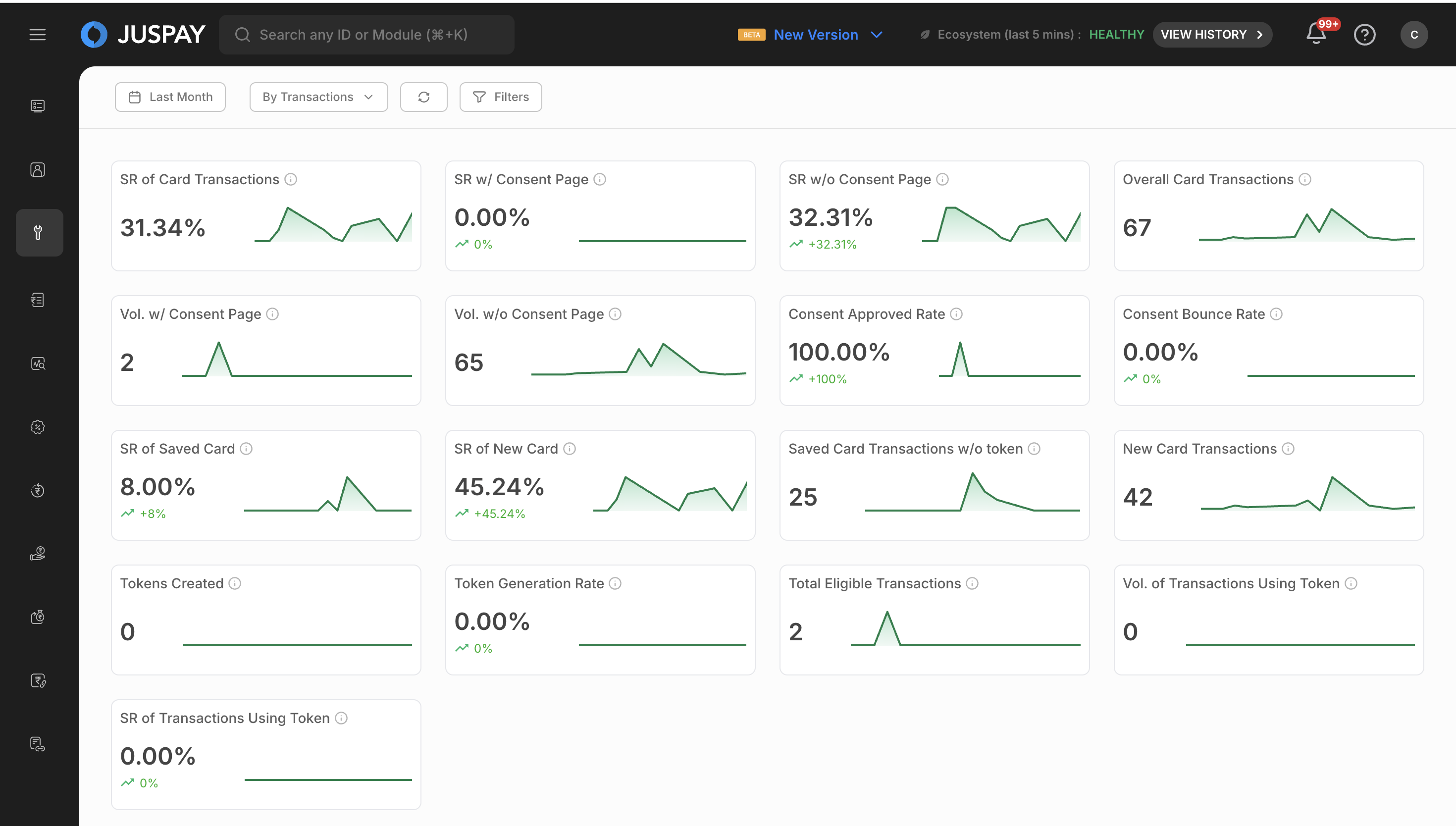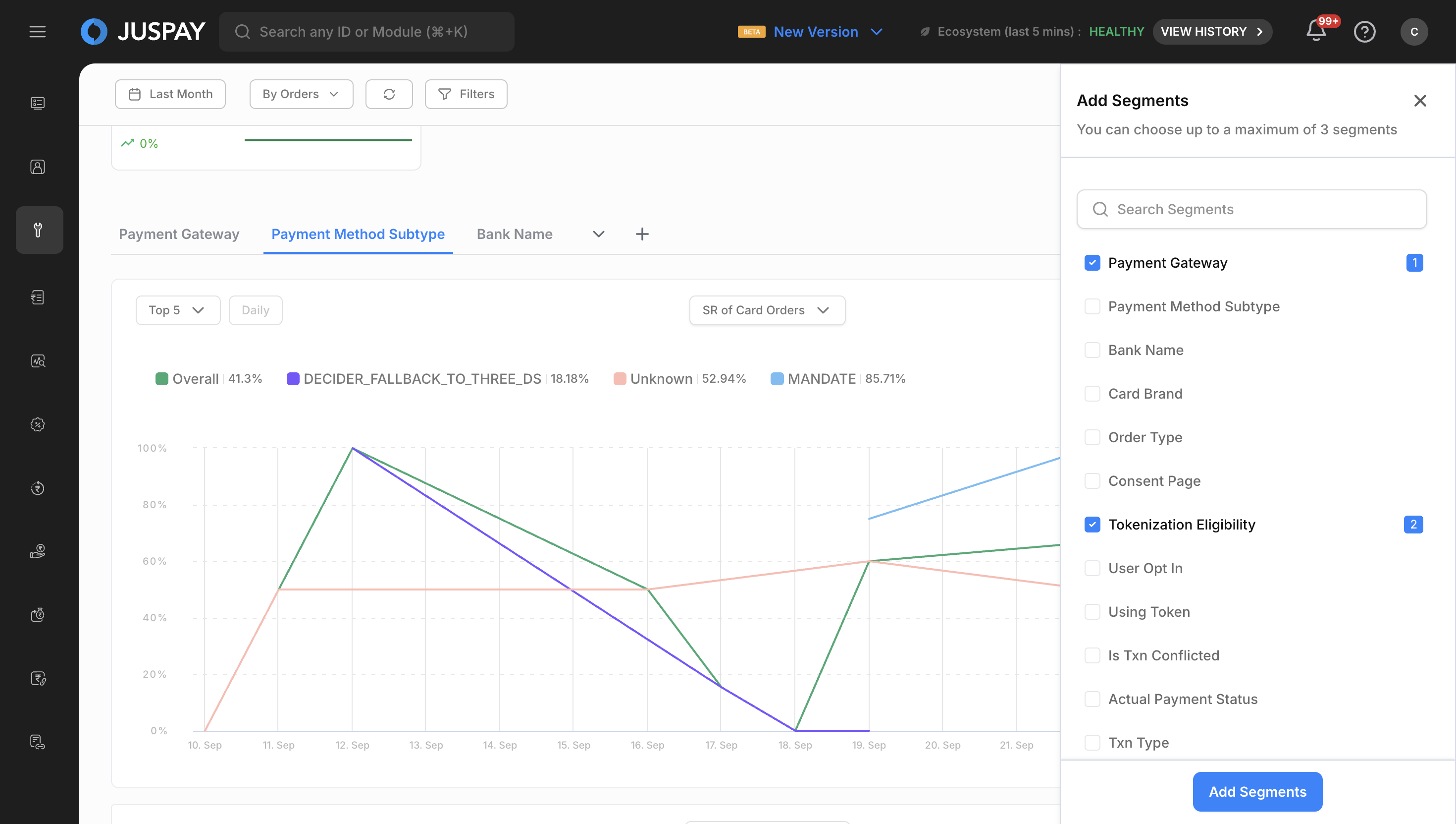 The Tokenization Analytics module provides comprehensive insights and monitoring capabilities for all tokenization data processed through the Juspay payment platform. It offers real-time and historical analysis of tokenization performance, success rates, processing times, and detailed breakdowns across various business dimensions with multiple viewing modes for different analytical perspectives.