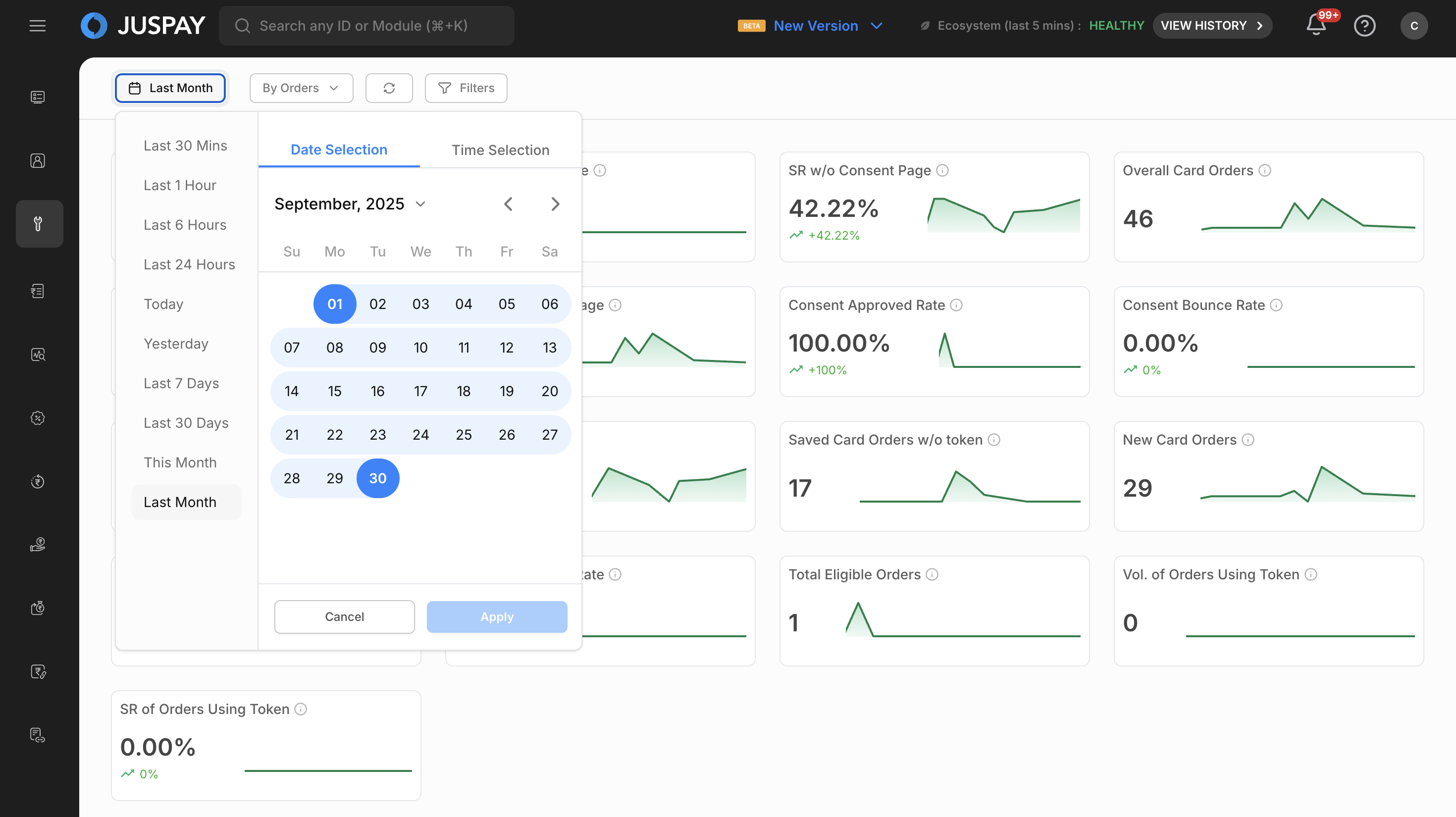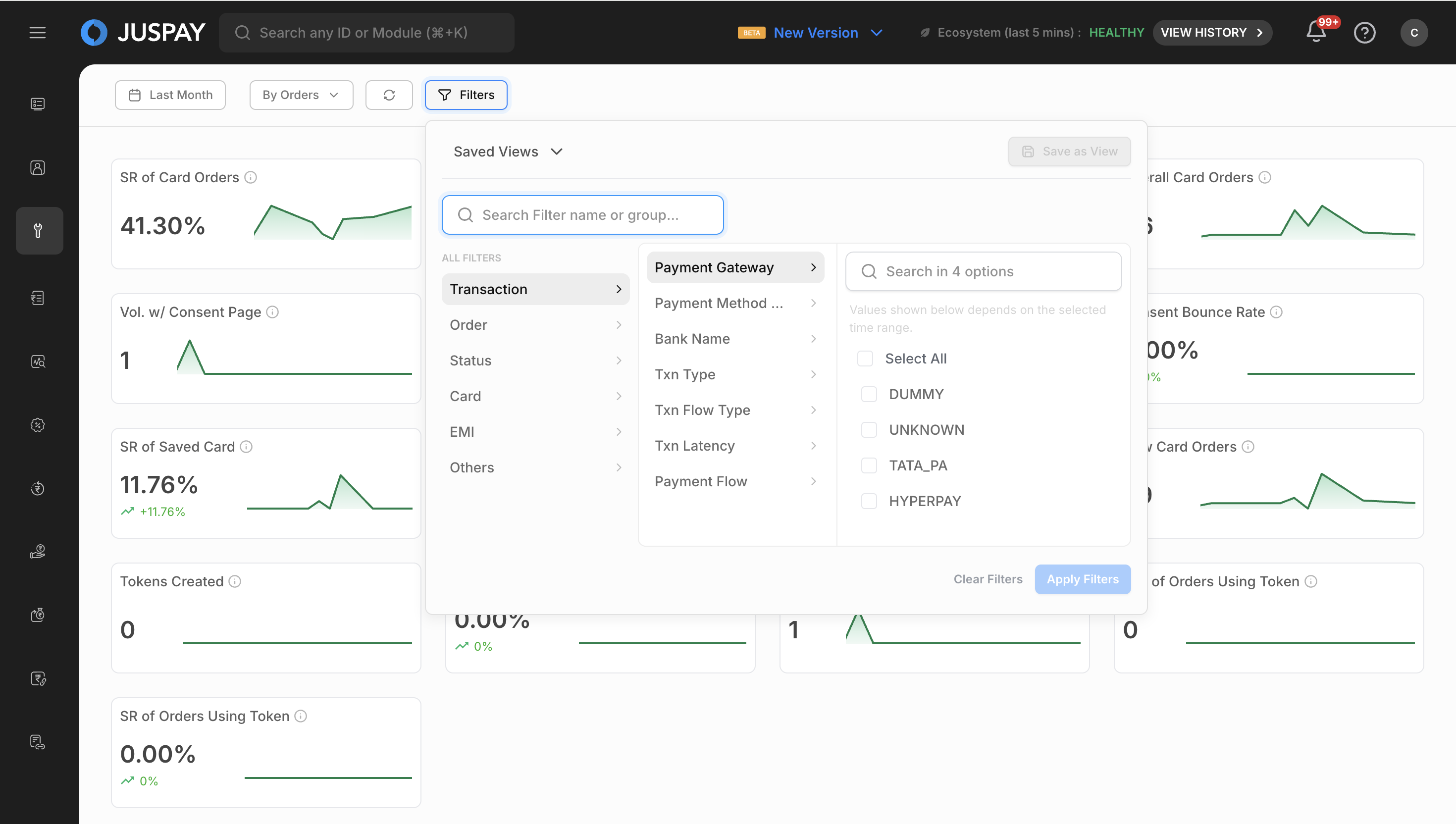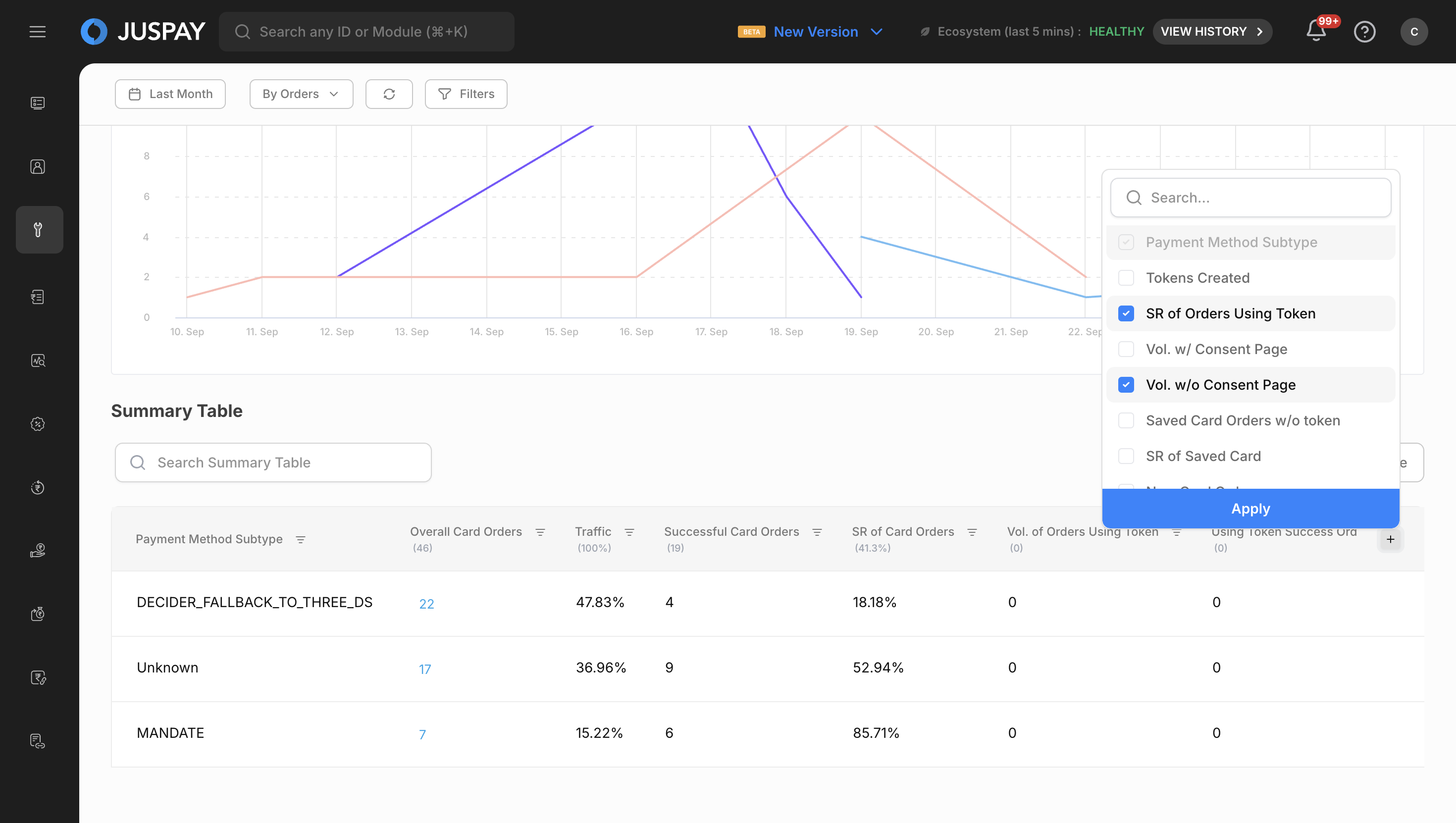 The Tokenization Analytics module provides comprehensive insights and monitoring capabilities for all tokenization data processed through the Juspay payment platform. It offers real-time and historical analysis of tokenization performance, success rates, processing times, and detailed breakdowns across various business dimensions with multiple viewing modes for different analytical perspectives.