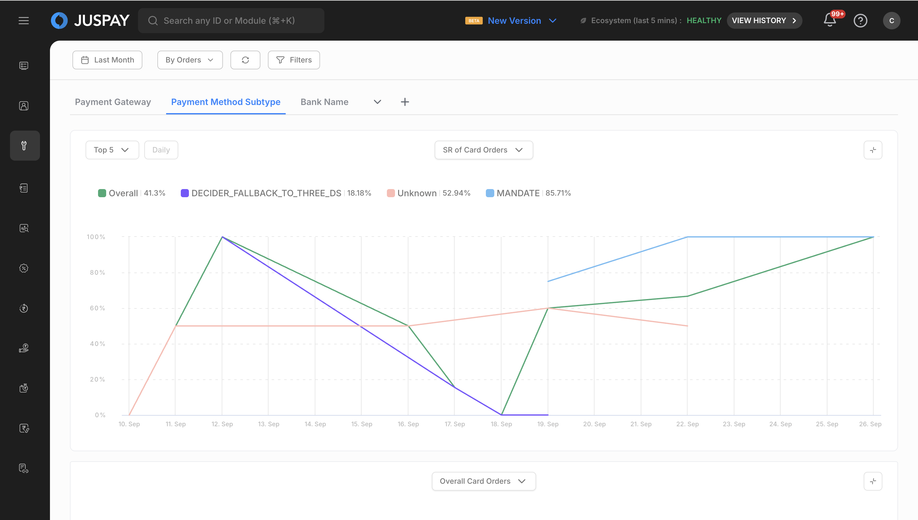 Metrics Focus: Transaction success rates, processing times, error analysis, and payment method effectiveness
