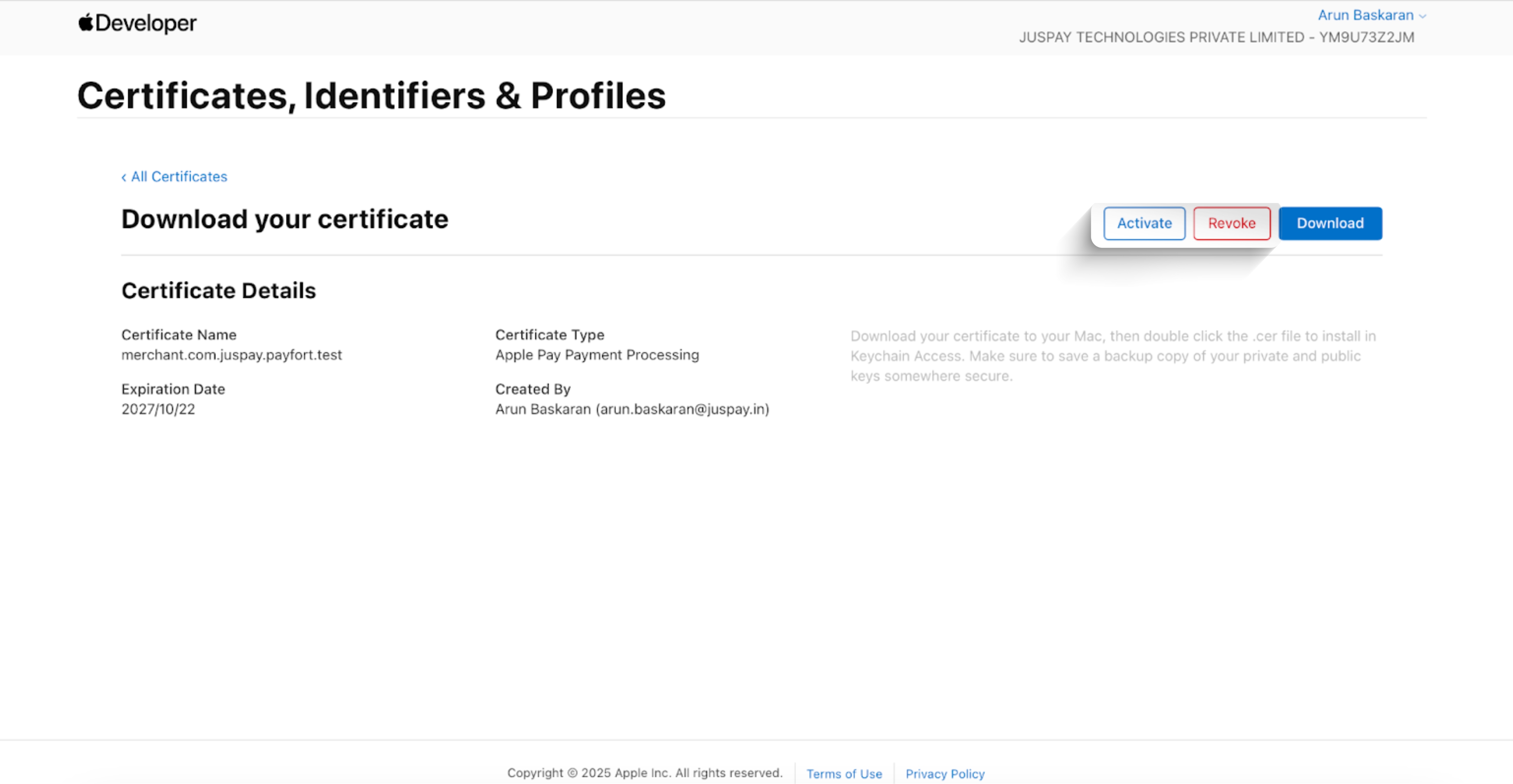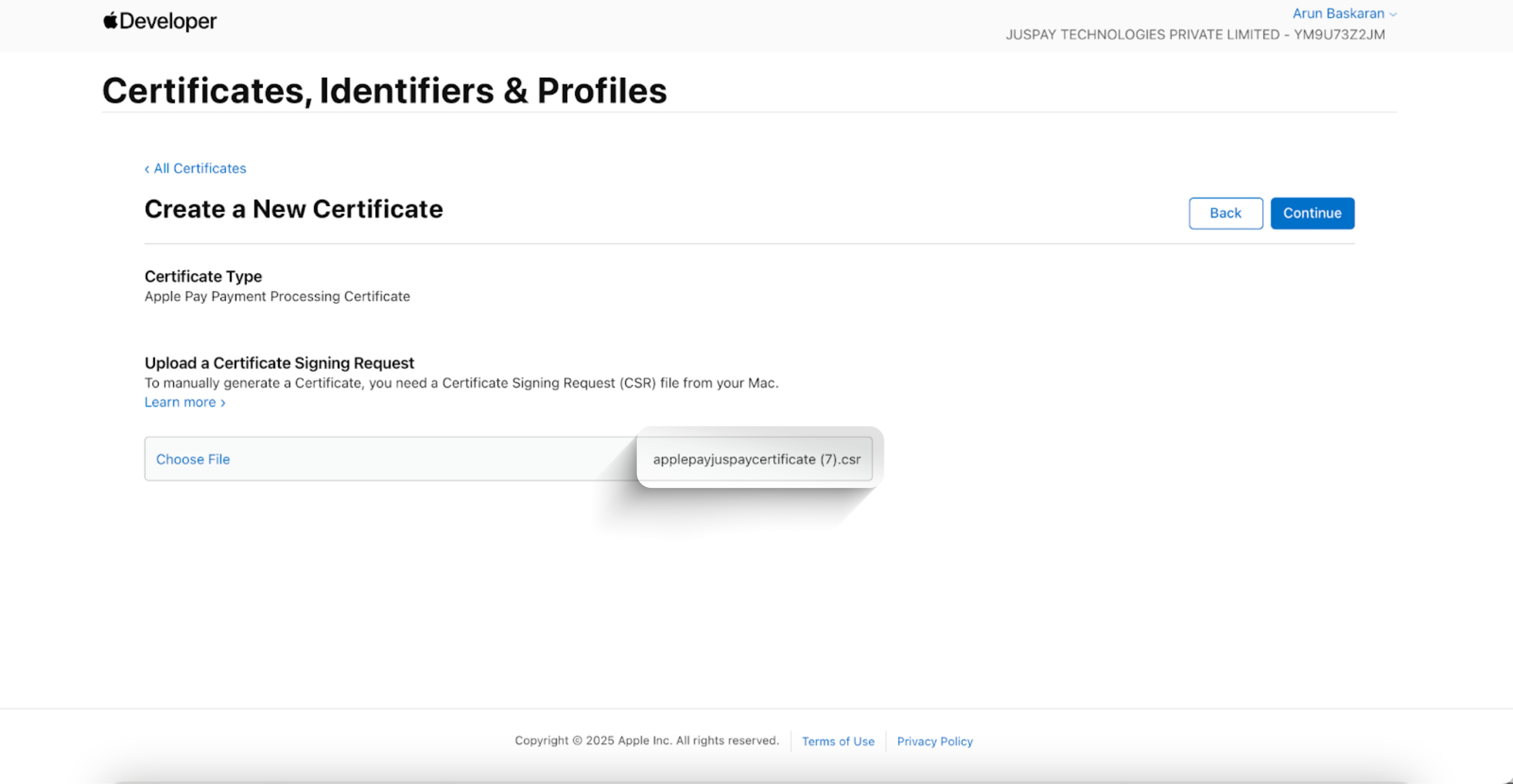 Generate Merchant Certificate on Apple Developer Portal