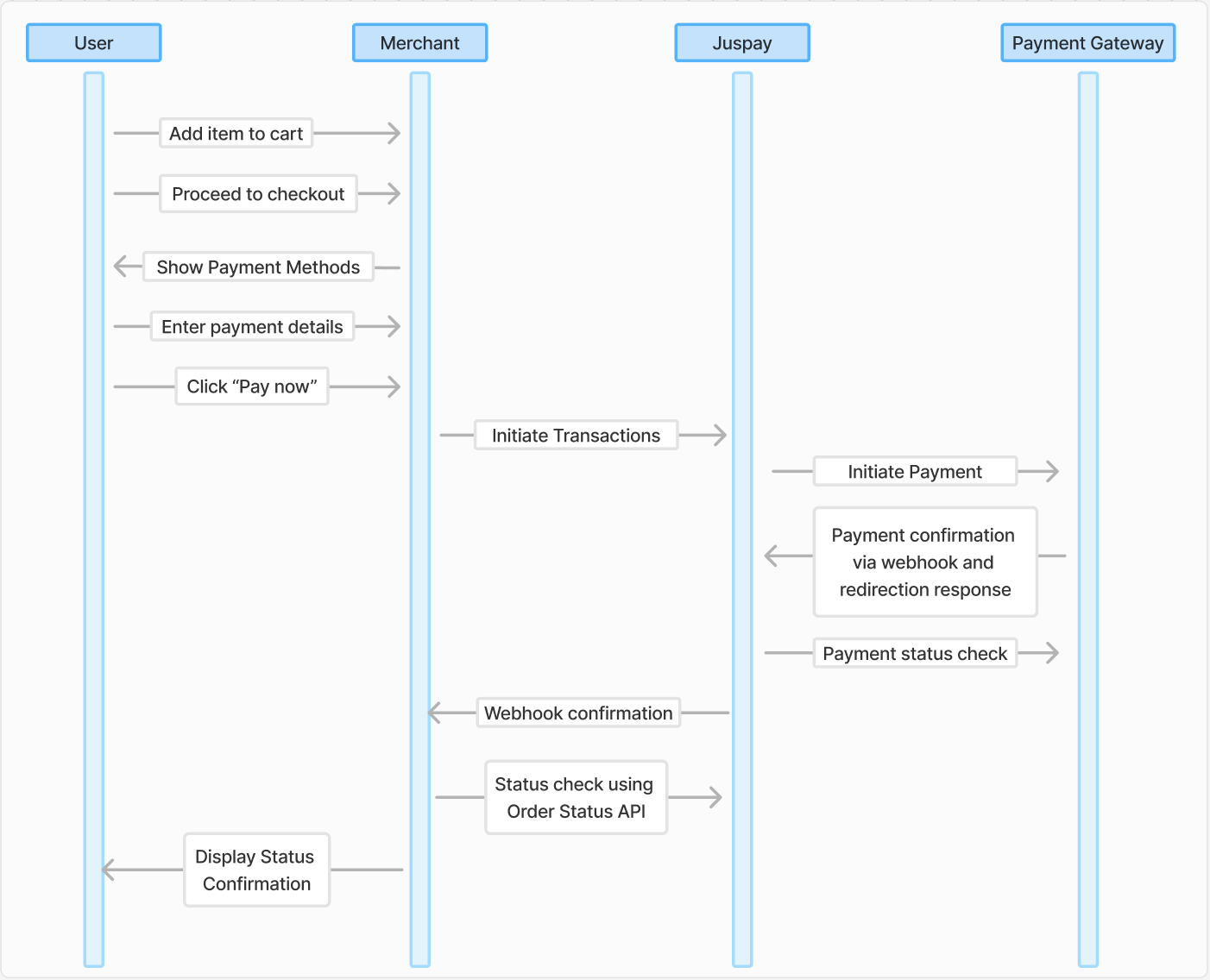 This flow ensures a secure, scalable, and reliable payment process, with Juspay handling the complexities of payment processing, while the merchant focuses on the user experience and order fulfillment.
