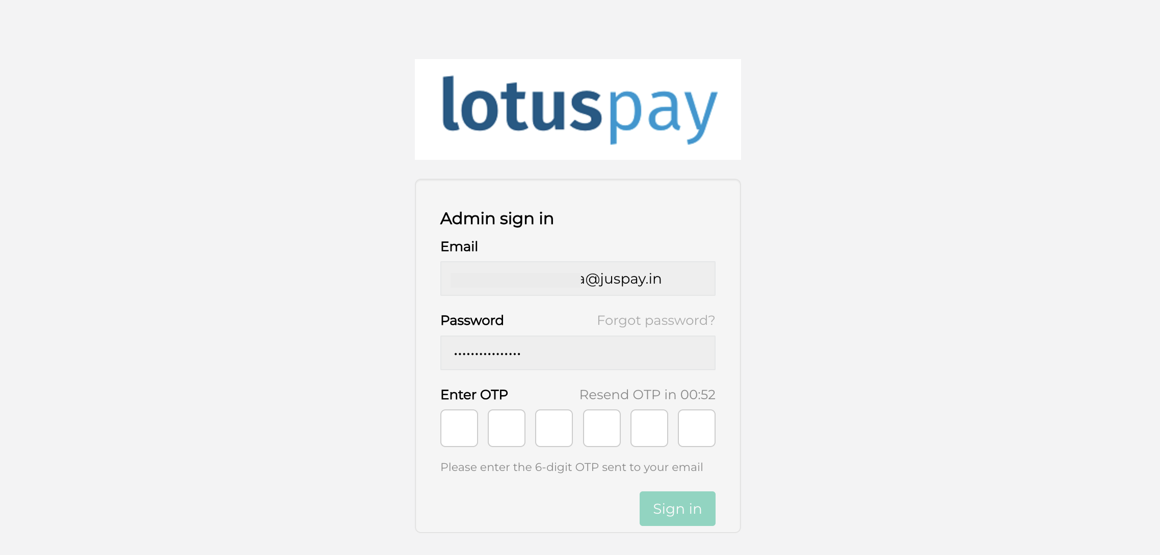 After entering the correct password, a 6-digit One-Time Password (OTP) will be sent to your registered email address.