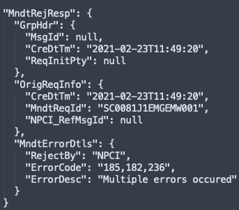 API eMandate authorisation can return an error if the NPCI rejects the request or response.