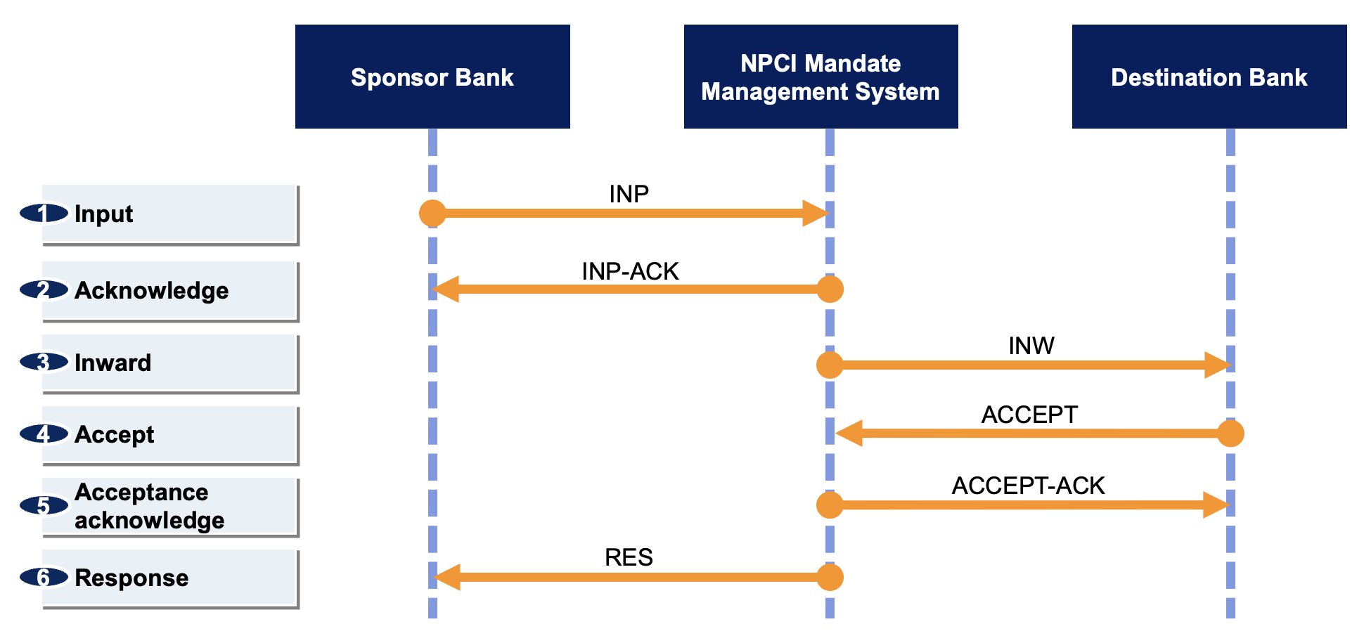 This process was prone to issues. The debtor, creditor and service provider assumed from the successful ONMAGS response that the mandate is registered, but sometimes the destination bank would not send the INP or the sponsor bank would not send the ACCEPT, resulting in a mismatch between ONMAGS and MMS. Because of this NPCI abandoned this flow.