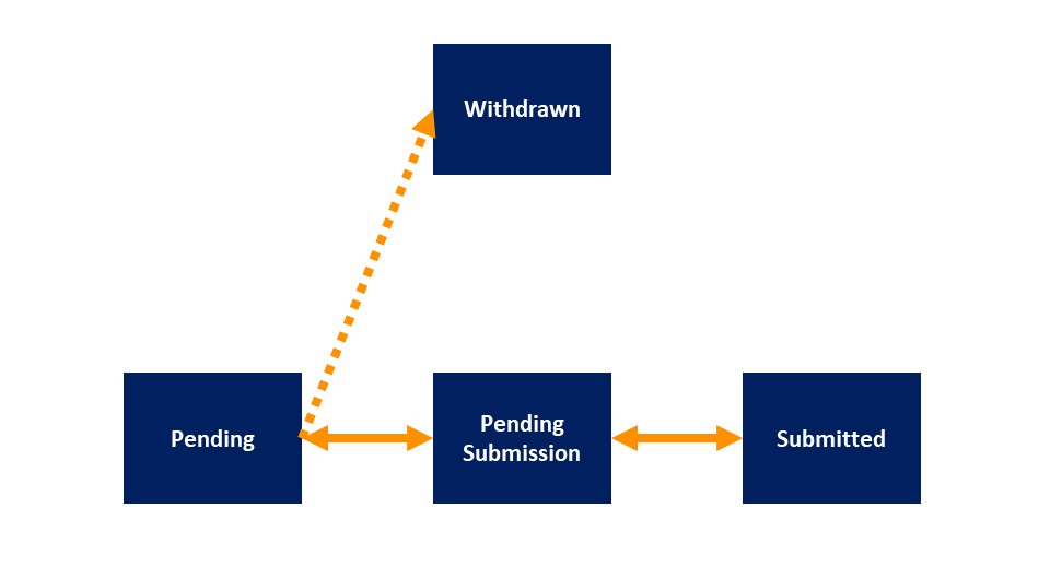 Possible next statuses: Pending Submission, Withdrawn