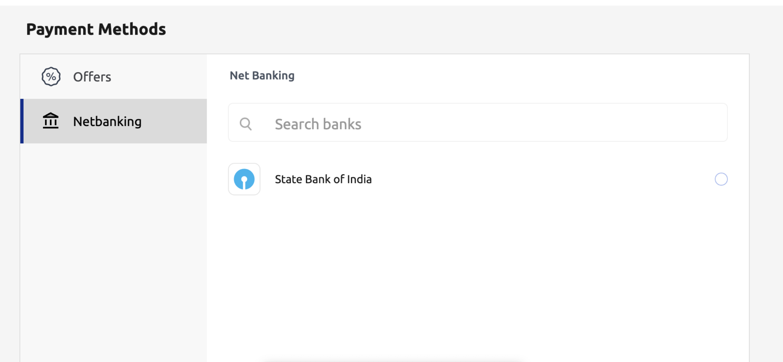 By default, Juspay payment page will show all the payment methods which is configured on Juspay dashboard. We have a efficient control to show/hide the payment methods based on the merchant preference without changing anything from existing integration using Payment Locking.