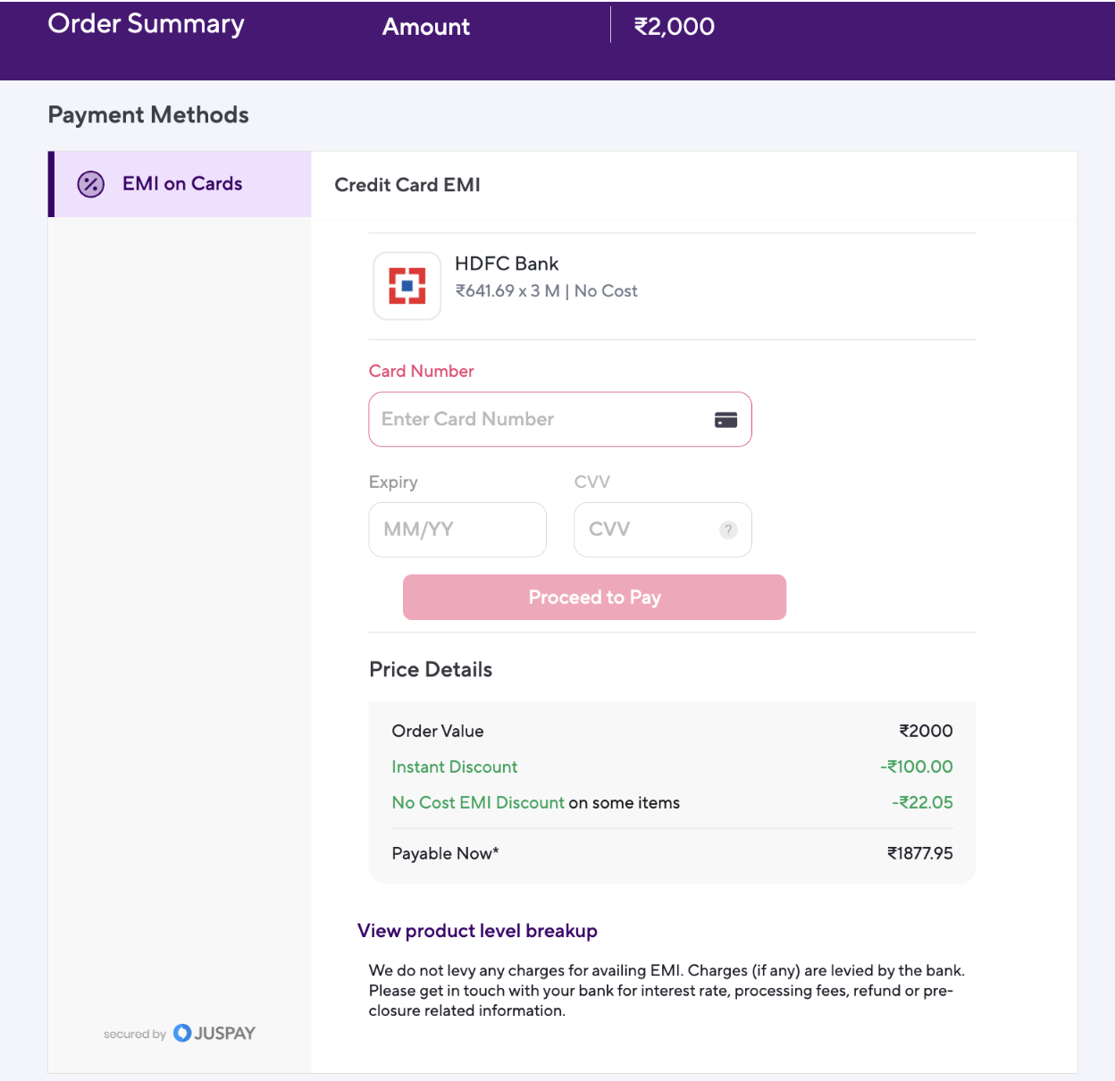 emiOptionsField that control all the EMI based options to be displayed on the payment page.