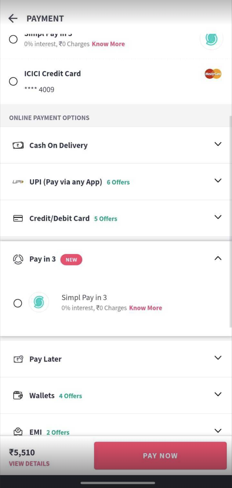 With Simpl's Pay in 3 option, user’s have flexibility on: