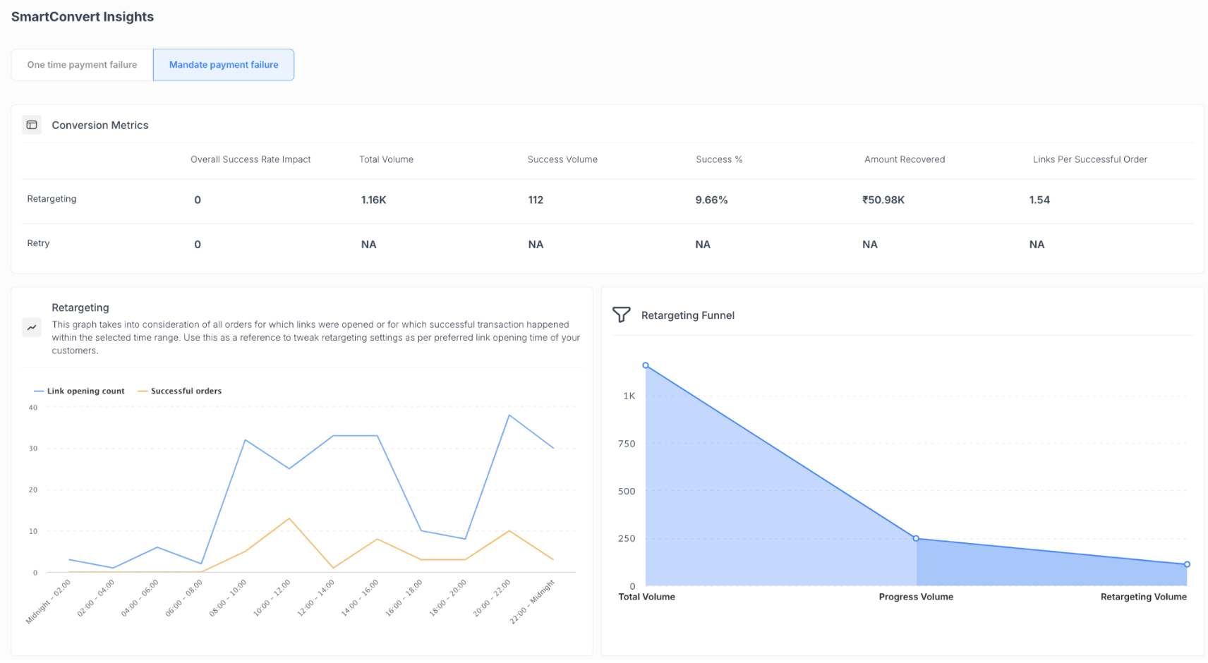 Includes: Order-level retargeting stats, retry attempts, conversions
