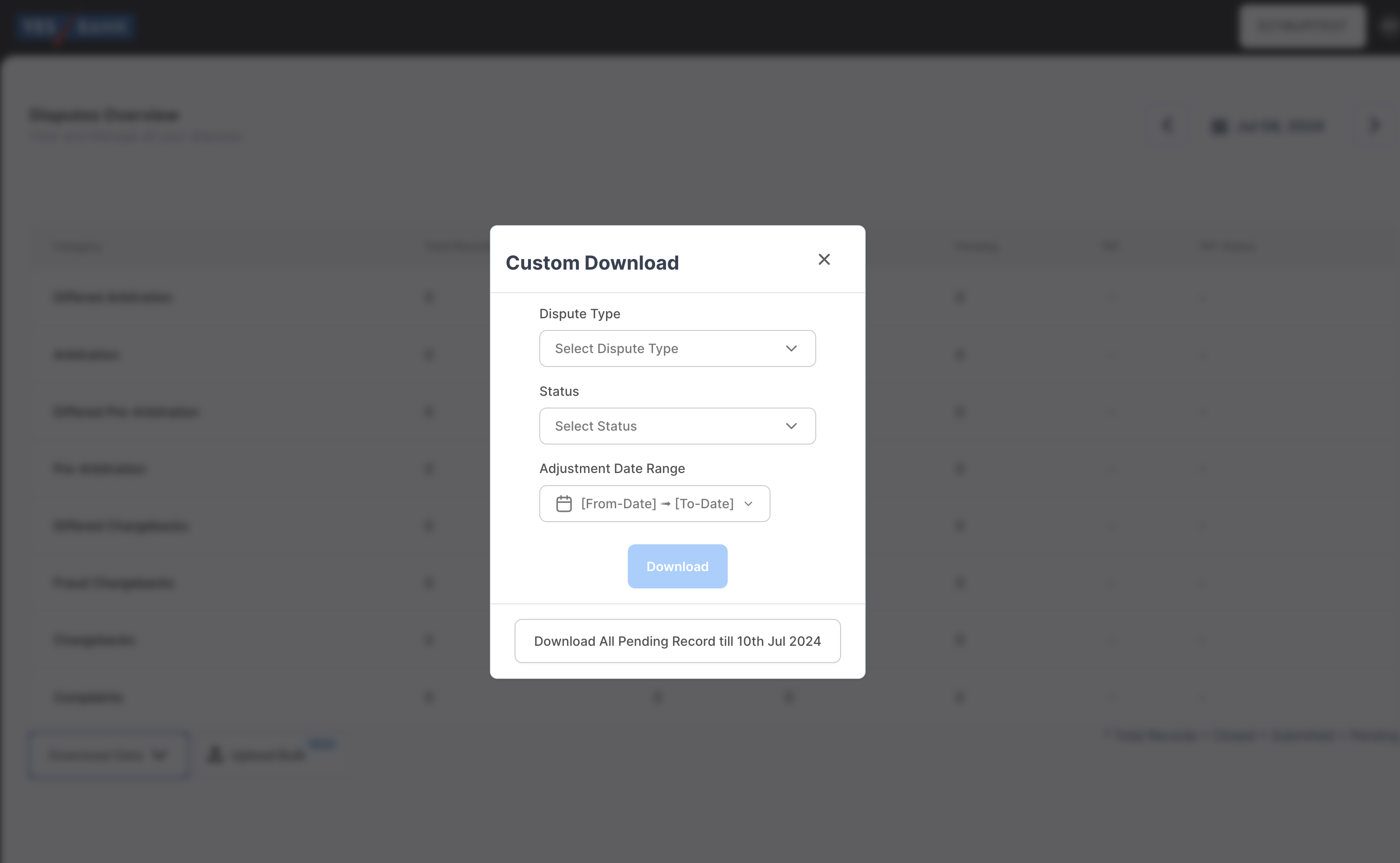 Merchants can also get all the pending records for the last 33 days without any customization using the “Download all pending till current date” option.