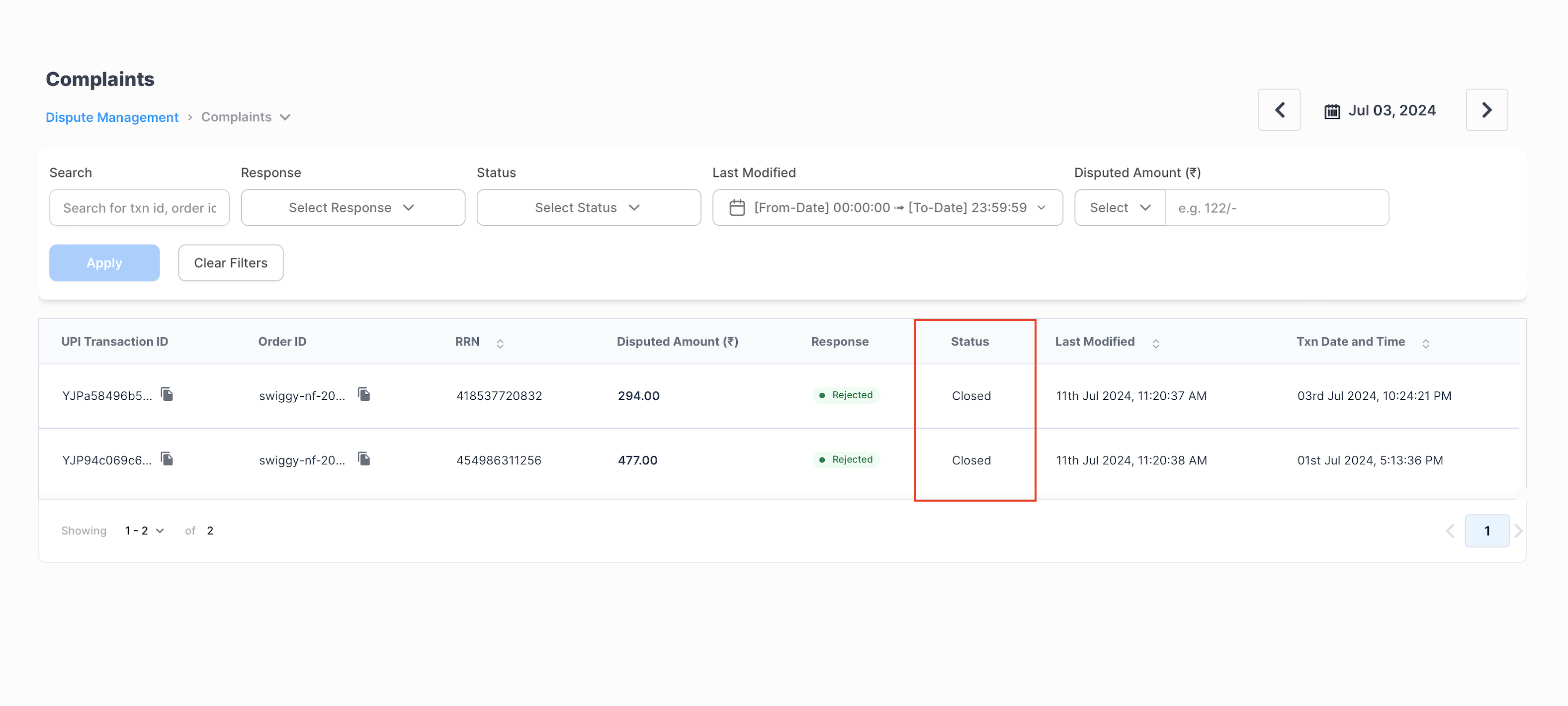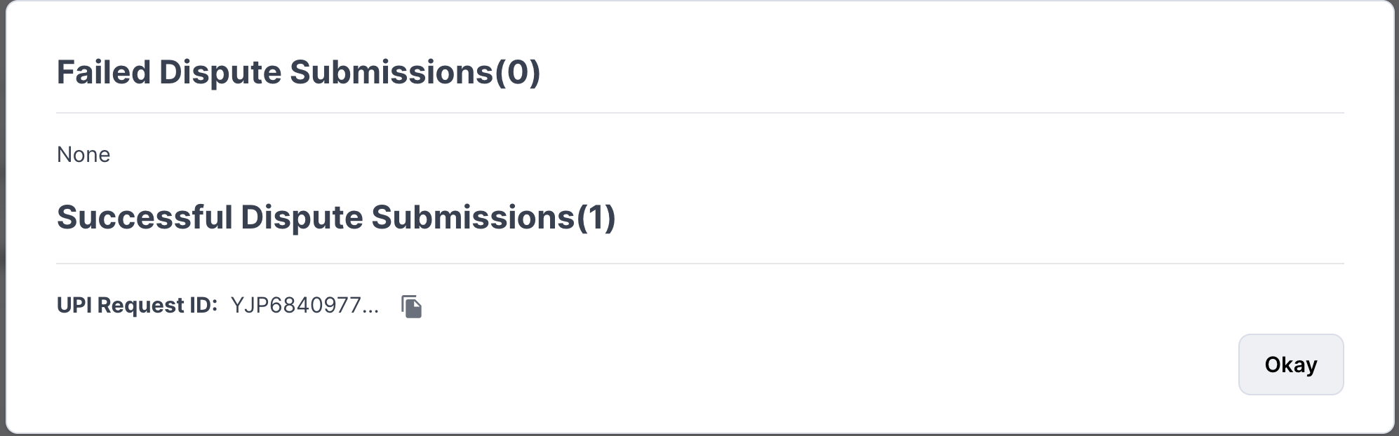 Once this is closed by the Juspay team in the NPCI portal, the status will be changed from ‘Submitted’ to ‘Closed’ which is the final status of the Dispute.