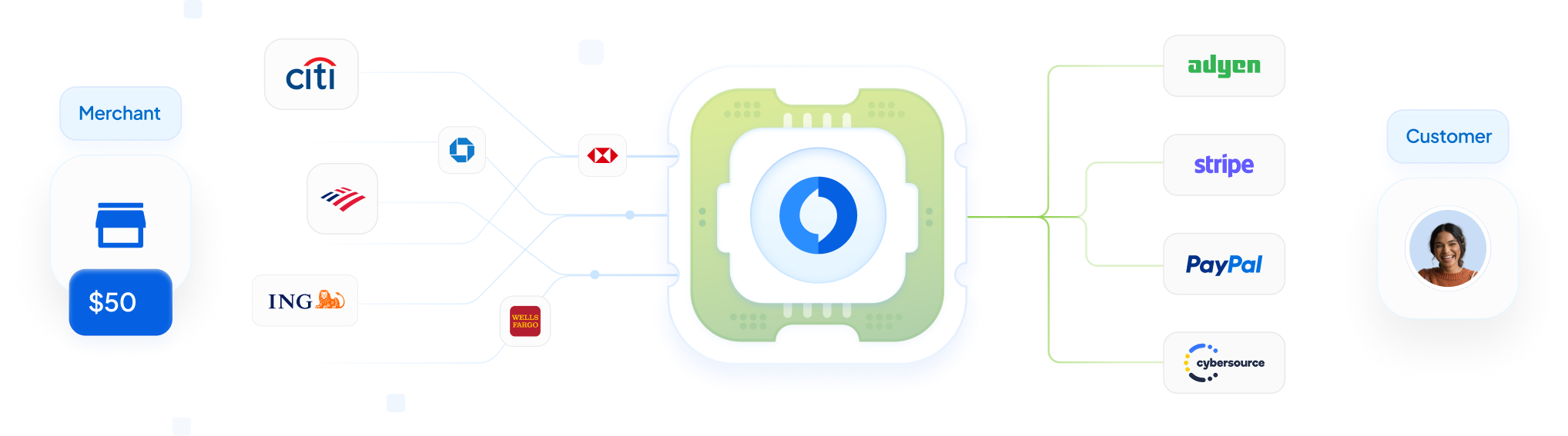 Actively monitor PSP health & approval rates, and automatically route transactions to the most optimum processor for successful completion.