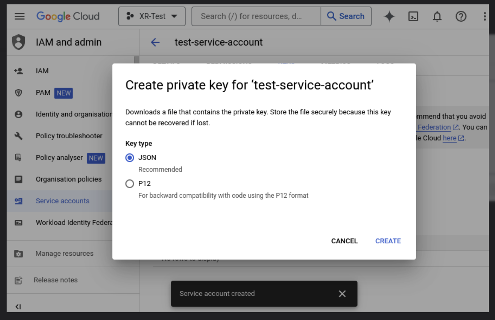 A json file with the credentials will be downloaded on your system.