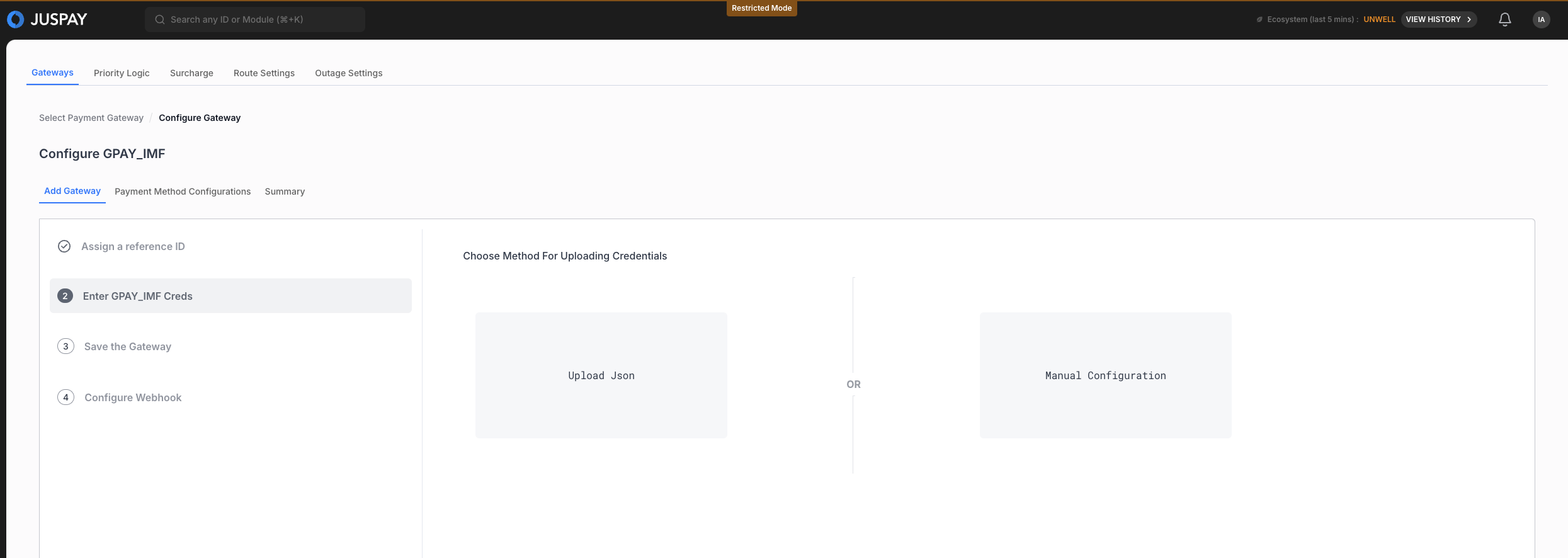 You can either directly upload the JSON file on the Juspay Dasboard or manually enter the details -