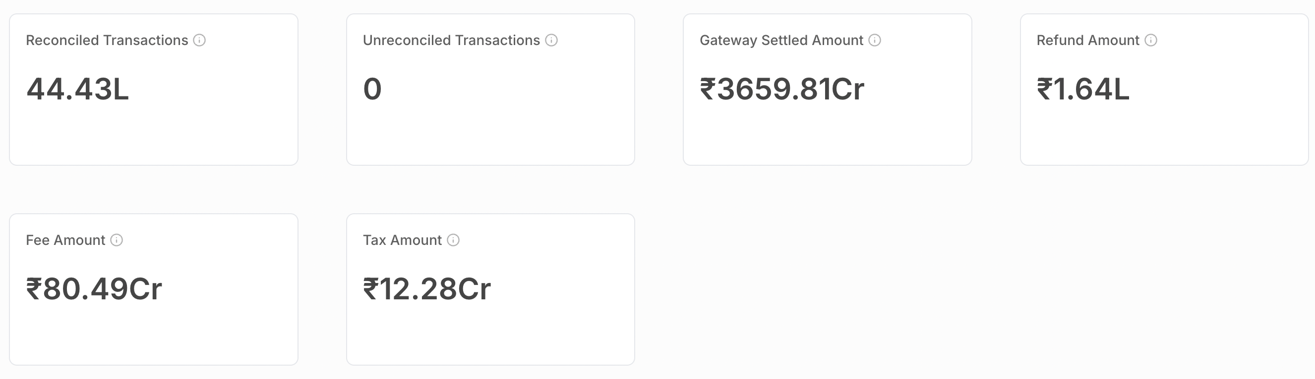 | Number of transactions that were successfully reconciled between Merchant/ Juspay file and the payment gateway.